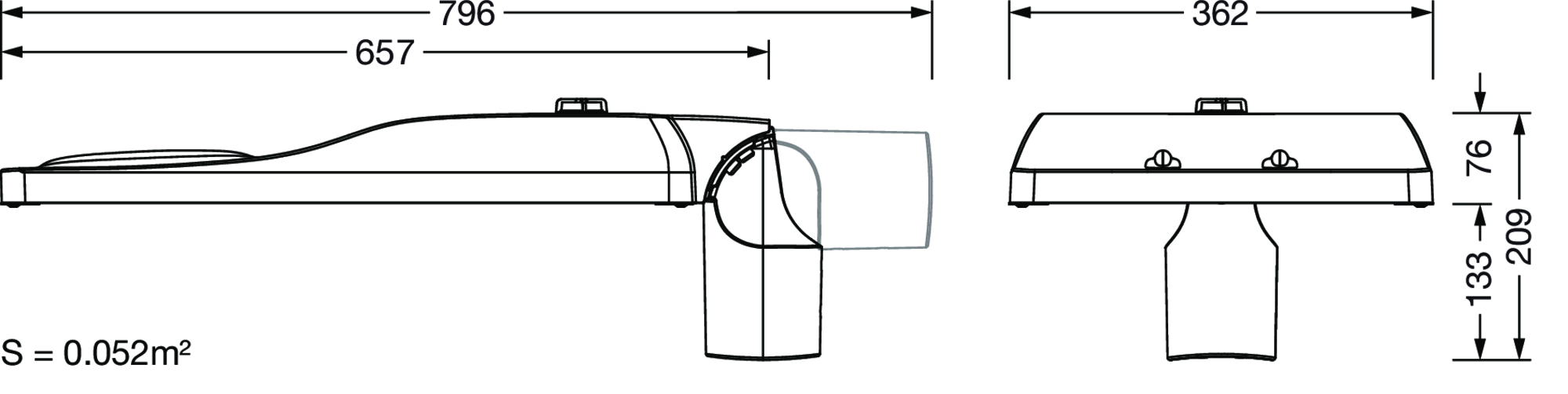 Streetlight SL 31 maxi D4i, Desk-Remote luminaria de mástil para superior, montaje lateral; control de luz con lente de PMMA; distribución de luz: ST1.0a, directo asimétrico haz, para iluminación normalizada de plazas y calles; LED: flujo luminoso: 28.310lm, color de luz: 730, temperatura de color: 3000K; eficacia lumínica: 133,9lm/W; control: preajuste: característica de regulación logarítmica, parametrización flexible del flujo lumínico, control de flujo lumínico en el tiempo, control de flujo lumínico constante, reducción de potencia, liberación de temperatura inteligente en balasto electrónico y en módulo LED, protección de sobrecalentamiento; carcasa de luminarias, de aluminio de extrusión, SITECO gris metalizado (DB 702S), categoría de corrosividad C5 high según DIN EN ISO 12944; cubierta de vidrio de seguridad, transparente, de apertura sin herramientas; brida de mástil de aluminio de extrusión, SITECO gris metalizado (DB 702S), espiga: 76/60mm, brida de mástil incluida y desmontada; longitud de cable: 14,5m, cable de conexión premontado; conexión de alimentación: 220..240V, CA, 50/60Hz; consumo de energía (al inicio de la vida útil): 211,4W / (al final de la vida útil): 238W / (en funcionamiento reducido 50%): 88,1W; tipo de protección (total): IP66; clase de protección (total): SK II (a prueba de choques eléctricos); resistencia contra impacto: IK10; marca de verificación: CE, ENEC, ENEC+, VDE, UKCA, ZD4i; temperatura ambiente de funcionamiento admisible para aplicaciones de exterior: -40..+50°C; unidad de embalaje: 1 unidad
