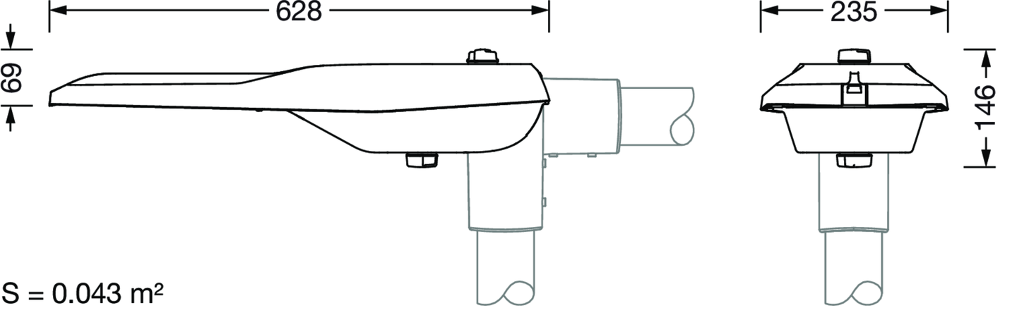 Streetlight SL 21 mini, éclairage sur mât, orientation de la lumière primaire avec lentille, en PMMA, cache d'éclairage primaire: cache, en verre de sécurité trempé, transparent, répartition de la lumière: STW1.0a, diffusion de lumière: direct distribution, caractéristique d'éclairage primaire: asymétrique, type de pose: sur le mât, pose au sommet du mât, LED, High Power LED, flux lumineux assigné: 6.180lm, rendement lumineux: 153lm/W, température de couleur: 740, température de couleur: 4000K, ballast: D4i, commande: protection contre la surchauffe, commande du flux lumineux constant, commande de flux lumineux en fonction du temps, paramétrage flexible du flux lumineux, préréglage : caractéristique de gradation logarithmique, raccordement au secteur: 220..240V, AC, 50/60Hz, début de la durée de vie: 40W, fin de la durée de vie: 41W, réduction: 19W, boîtier de luminaire, en aluminium coulé sous pression, thermolaqué, fer micacé SITECO (DB 702S), catégorie de corrosivité C5 high selon DIN EN ISO 12944, veuillez commander la bride de mât séparément, inclinaison pouvant être réglée : 0°, 5°, 10°, 15°, remplacement non destructif du joint, système d’étanchéité à plusieurs niveaux, longueur: 628mm, largeur: 235mm, hauteur: 110mm, bride de mât pour un embout de : 42mm (sur le mât) : 5XC10008XM4, 60/48mm (sur le mât/au sommet du mât) : 5XC10108XM2, 76/60mm (sur le mât/au sommet du mât) : 5XC10108XM1, hauteur des points lumineux: 4..8m, Smart Interface dessus et dessous, degré de protection (total): IP66, classe de protection (total): classe de protection II (double isolation), marquage: CE, ENEC, ENEC+, VDE, résistance aux chocs: IK10, température ambiante de fonctionnement admissible pour des applications à l'extérieur: -40..+50°C, éclairage de voies et de places conforme aux normes, unité d'emballage: 1 pièce