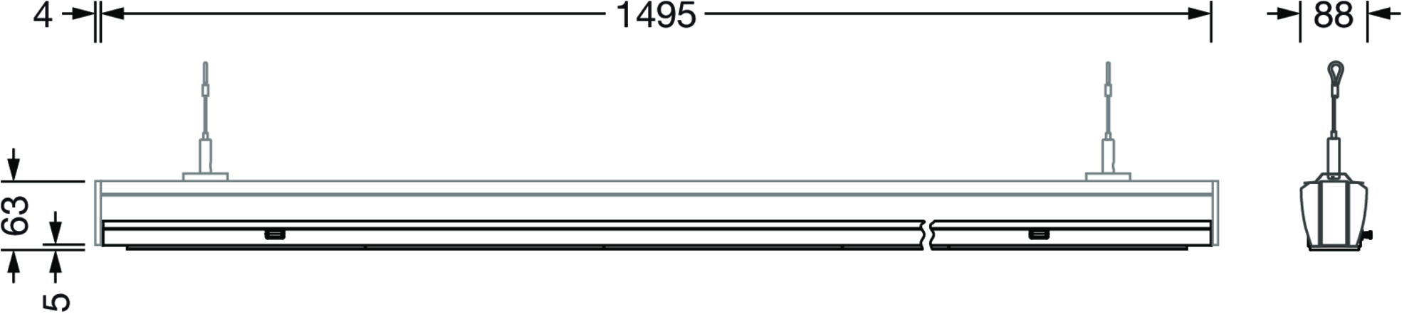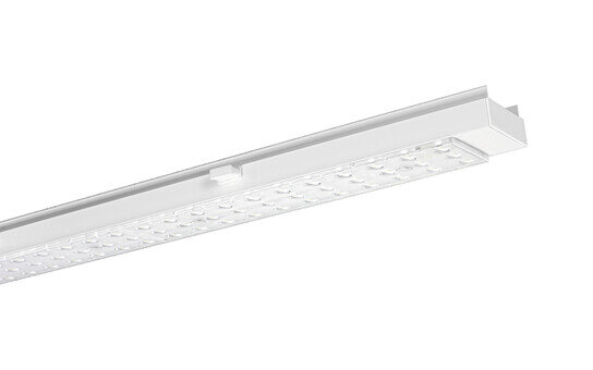 Modario® 31, luminaire insert, of aluminium, coated, traffic white (RAL 9016), length: 1.495mm, width: 78mm, height: 35mm, 5x system unit, system units: 299mm, LED rated luminous flux: 11.850lm, light colour: 840, SDCM (Standard Deviation of Colour Matching)MacAdam ≤ 3 SDCM (initial), control gear: ON/OFF Multilumen, with system connector: socket, mains connection: 220..240V, AC, 50/60Hz, rated input power: 68W, primary light control with lens, of plastic, primary optical cover: cover, of PMMA, light emission: direct distribution, protection rating (complete): IP20, insulation class (complete): insulation class I (protective earthing), certification: CE, ENEC 10, VDE, UKCA, impact resistance: IK03, permissible ambient temperature for indoor applications: -25..+35°C, reducing of maximum allowable ambient temperature of 5°C with ceiling mounting, packaging unit: 1 piece