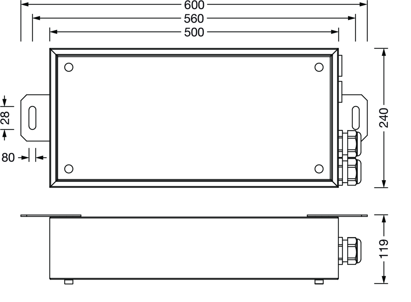 TL40, luminaire pour tunnel, cache d'éclairage primaire: plaque de protection, en verre de sécurité trempé, antireflet, transparent, répartition de la lumière: PL52SPL52, diffusion de lumière: direct distribution, caractéristique d'éclairage primaire: symétrique, type de pose: en saillie, 16 broches, 16mm² max., High Power LED, flux lumineux assigné: 8.420lm, rendement lumineux: 130lm/W, température de couleur: 740, température de couleur: 4000K, ballast: DALI, avec borne, 16 broches, 16mm² max., raccordement au secteur: 220..240V, AC, 50/60Hz, puissance assignée: 65W, boîtier, en acier inoxydable 1.4404 (AISI316), décapée et passive, degré de protection (total): IP66, classe de protection (total): classe de protection I (mise à la terre), marquage: CE, ENEC, VDE, résistance aux chocs: IK09, température ambiante de fonctionnement admissible: -35..+25°C, unité d'emballage: 1 pièce