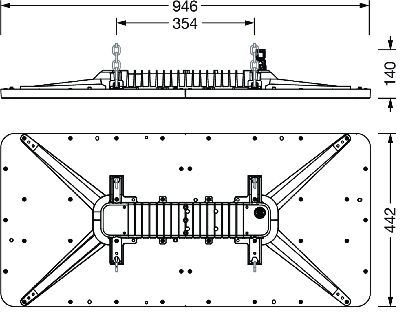 Hallenleuchte Highbay 21 maxi; direkt symmetrisch breit strahlend, Lichtlenkung mit Linse aus PMMA; UGR ≤ 22 (X = 4H | Y = 8H | S = 0,25H | Reflexionsgrade 70/50/20); Lichtstrom: 45.000lm; Lichtfarbe: 840, Farbtemperatur: 4000K, MacAdam ≤ 3 SDCM (initial), Farbwiedergabe: CRI > 80; Lichtausbeute: 188lm/W; Bemessungslebensdauer: 75.000h (L80) bei UT= ta max; Ansteuerung: DALI 2; Leuchtenanschluss: Klemme, 5polig, max. 2,5mm² (Leitungseinführung für eine Leitung, Ø 8, 5..16mm); Netzanschluss: 230..240V, AC/DC 0/50..60Hz; Anschlussleistung: 239,3W; Schutzart (gesamt): IP66; Schutzklasse (gesamt): SK I (Schutzerdung); Schutzzeichen: D; Schlagfestigkeit: IK08; Prüfzeichen: CE, ENEC, VDE, UKCA; Leuchte für Zentralbatterieanlagen gemäß EN 60598-2-22, interne Verdrahtung halogenfrei; Leuchte LABS-Konformität geprüft gemäß VDMA 24364:2018-05; Für den Einsatz in der Lebensmittelindustrie nach den Vorgaben von IFS-Food, HACCP und/oder BRC geeignet; Gehäuserahmen aus Hochleistungskunststoff PA6, verkehrsweiß matt (RAL 9016); Abdeckung aus PMMA; Abmessung (LxBxH): 946 x 442 x 72mm; zul. Betriebsumgebungstemperatur: -40..+55°C (bei Deckenanbau Reduzierung der zulässigen maximalen Umgebungstemperatur um 5°C); Verpackungseinheit: 1 Stück; (Lieferung ohne Zubehör; Montagezubehör bitte zusätzlich bestellen)