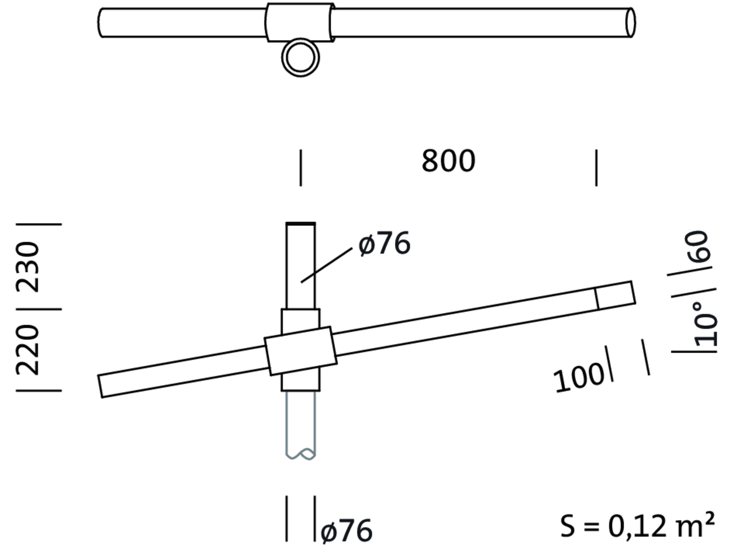 Luzern, braccio da palo, braccio di design, in acciaio, zincato e verniciato, ferro micaceo SITECO (DB 702S), braccio singolo, imbocco: 76mm (su palo diritto), dimensioni braccio: 800mm, unità d’imballo: 1 pezzo