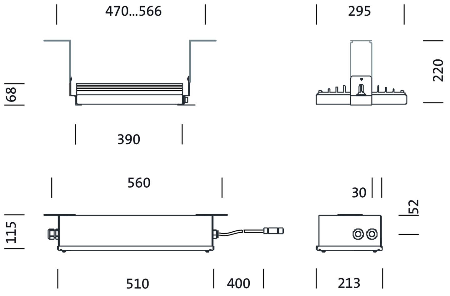 Vida útil 100000h (L95/B10) a temp. amb. = 25°C