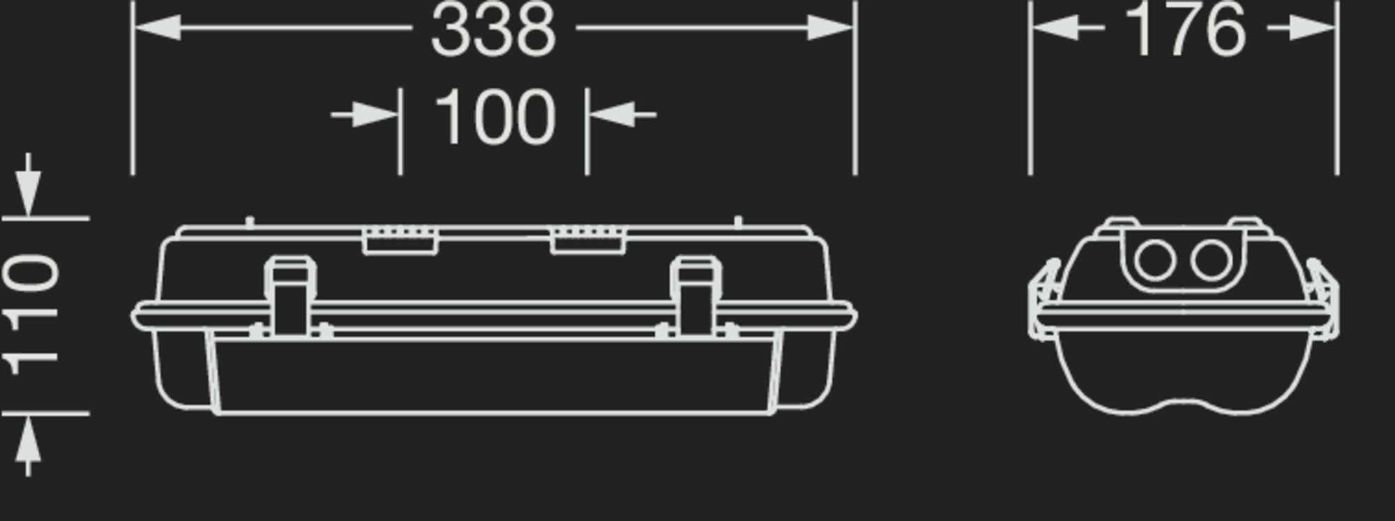 | 4000K | CRI > 80 | 2540lm | 20W | 127lm/W | ON/OFF | 5x 2,5mm² | -20..+40°C | IK10 | 338 | 1,1 |