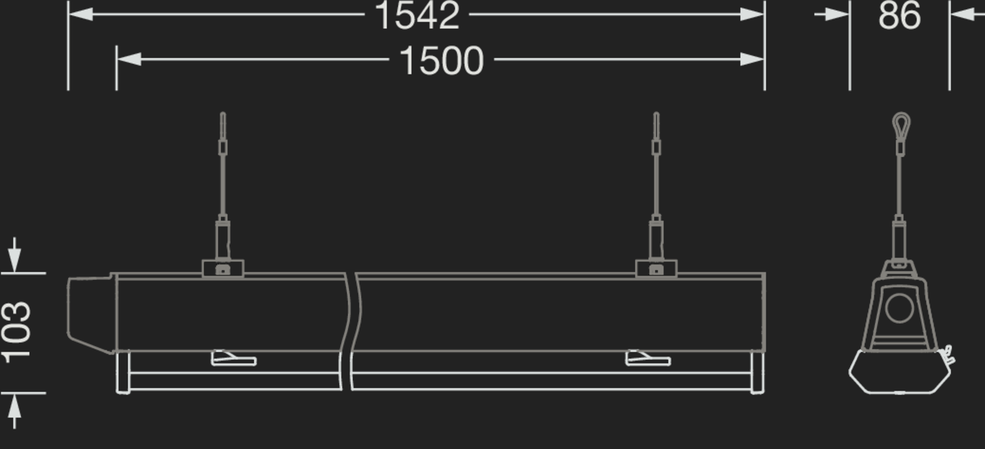 4000K | CRI > 80 | 9650 | 59W | 163lm/W | DALI 2 | -30..+40°C | IP54 | 1500 | 2.9 |