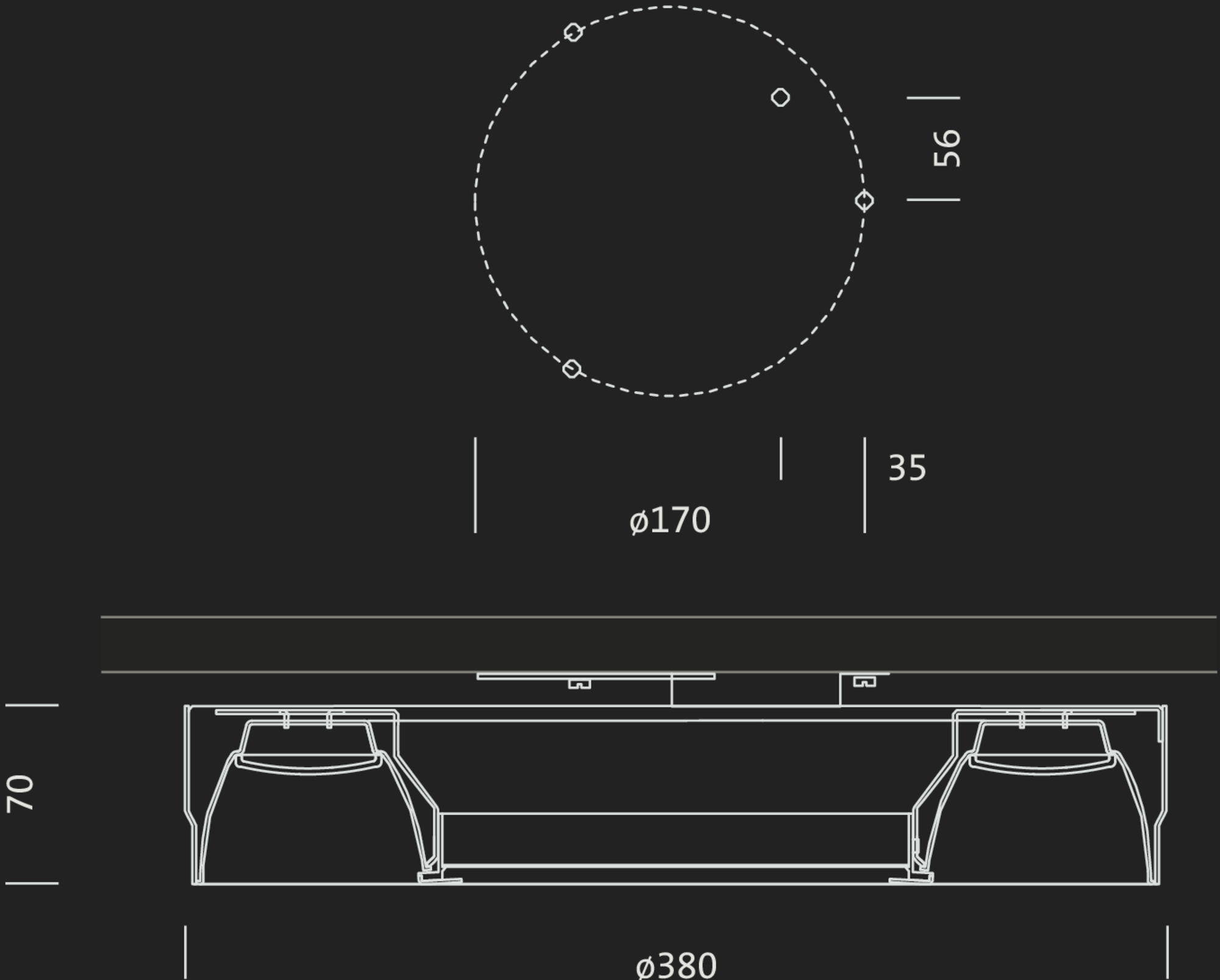 - Lichttechnik (Raster oder Scheibe) für Ring-Downlight bei Bedarf bitte zusätzlich bestellen