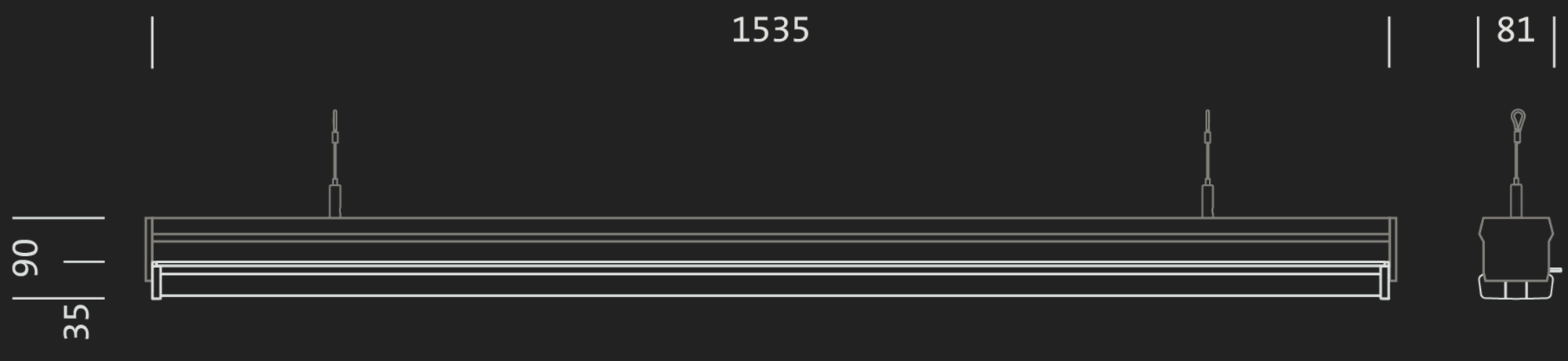| 4000K | IRC > 80 | 8590 | 48W | 179lm/W | ON/OFF | -35..+45°C | IP20/IP50 | 1535 | 1,8 |