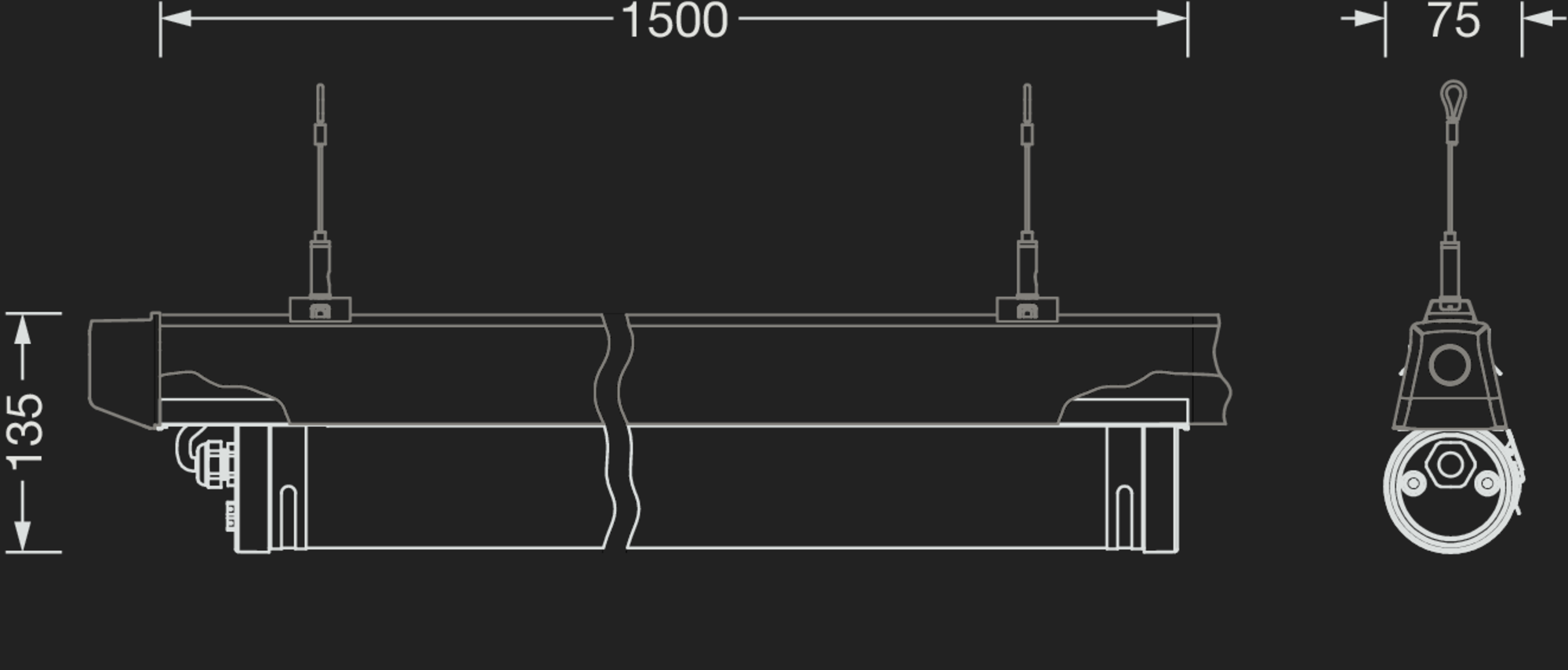 Monsun® 31 Tube, direct symmetric diffuse distribution, ON/OFF Multilumen