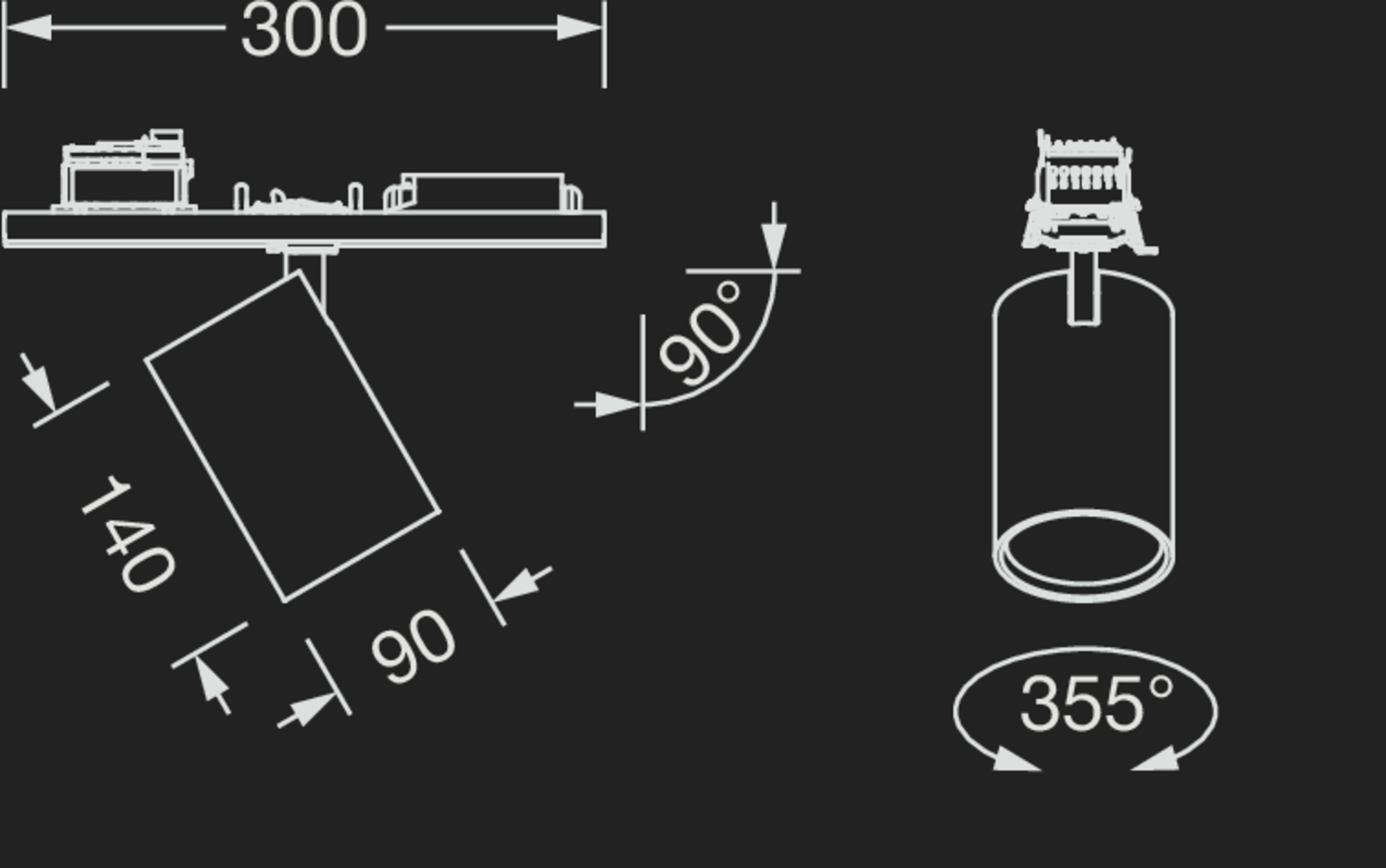 3000K | CRI > 90 | 21° | 3540lm | 28W | 135lm/W | ON/OFF | Ø90 | traffic white (RAL 9016) | 1.2 |