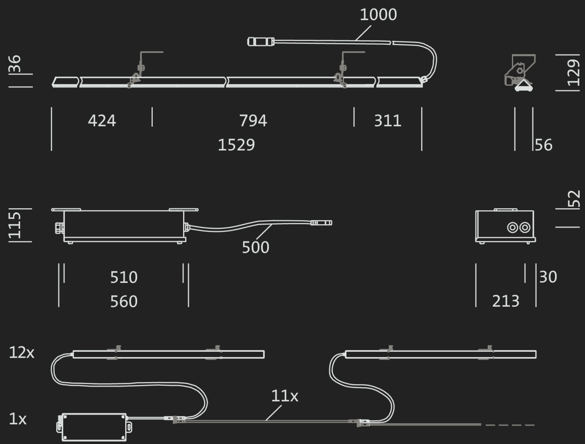 Well-designed concept with an E-box for 10…12 luminiares and a replaceable driver – reduces investment costs and simplifies maintenance through separate installation options