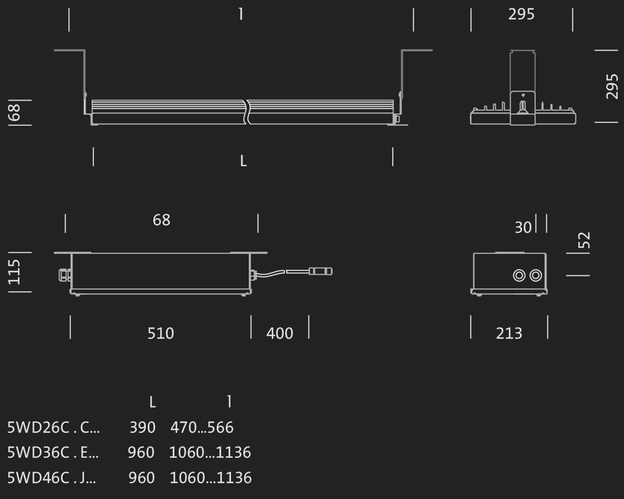5000K | CRI > 70 | 44020lm | 287W | 153lm/W | DALI | 17,6 |