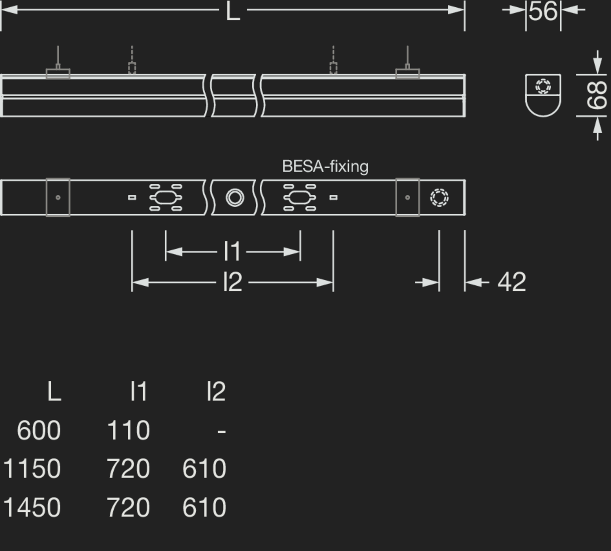 - emergency light kit only suitable for luminaire lengths 1149 and 1450mm