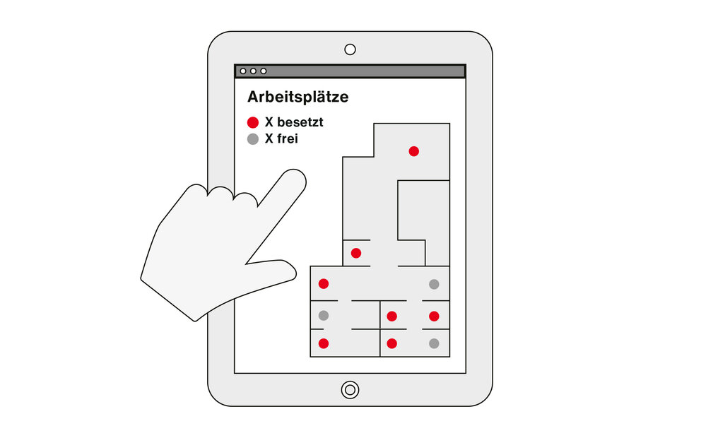 Employees can use an app to book open desks to work. Automatically complies with data protection regulations.