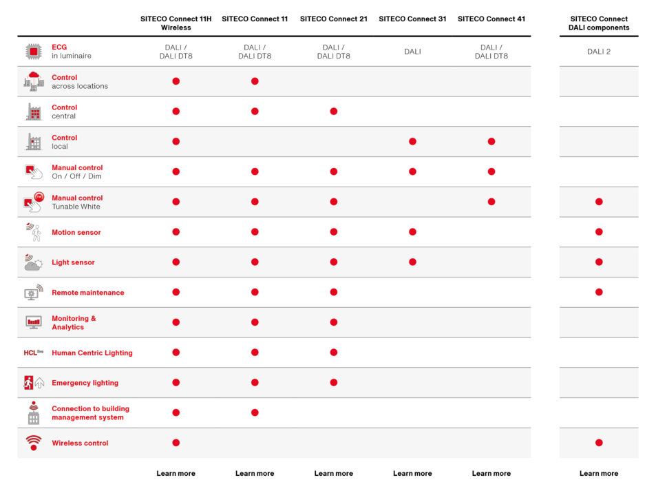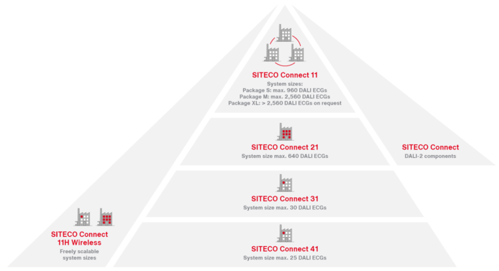 SITECO lighting solutions are based on a modular system. All luminaires and sensor luminaires have standardised interfaces, which means that they can be optionally expanded with sensor modules. This results in intelligent luminaires that can be easily integrated into light and building management systems. With a few components and quick planning, complex requirements are efficiently met.