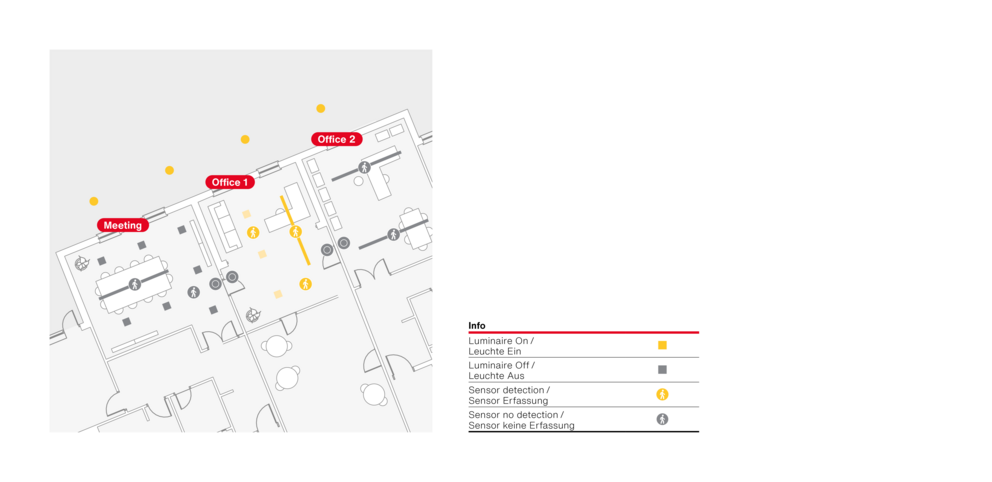 Monitoring shows at a glance in which areas the light is switched on - for full transparency and efficient control.