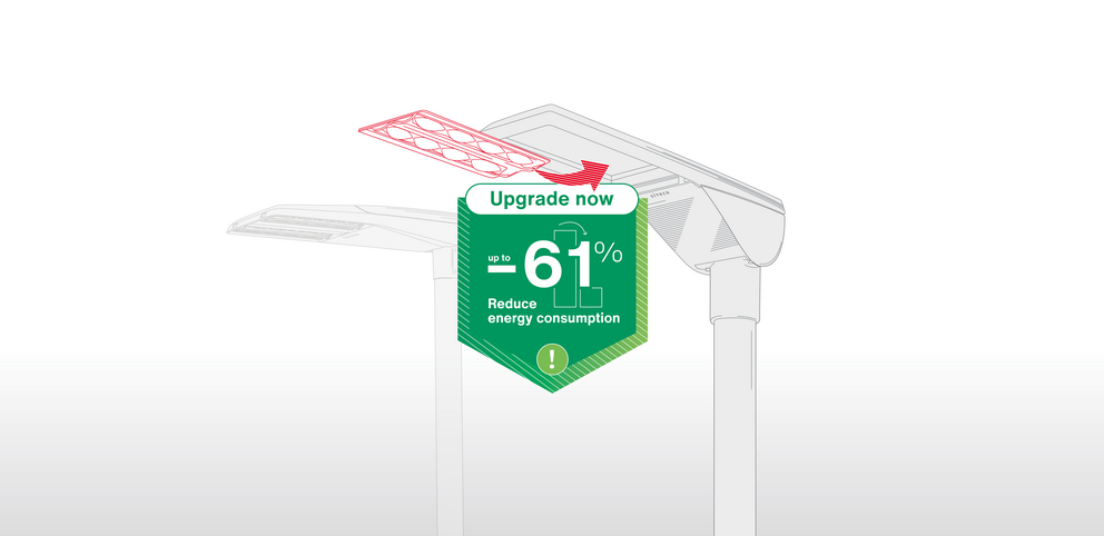 Leave 80% of the luminaires on the mast and simply replace the LED module and ECG: This is sustainability in action! You’d like to save energy without expending much effort? Then it’s time for an upgrade!