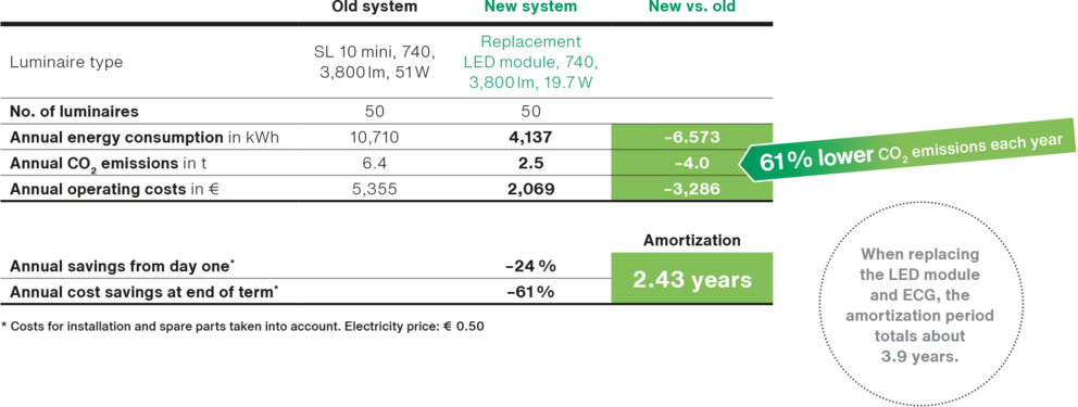 Calculation example when replacing the LED module. System with SL 10 mini.